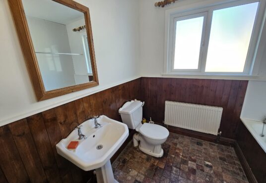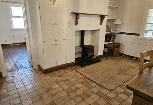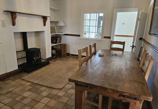 • Living Room: The living room is a cozy and inviting space, with a tiled floor that complements the home’s overall design. It features a stove with a back boiler, providing both warmth and hot water, making the living room the heart of the home, perfect for family gatherings or relaxing by the fire.