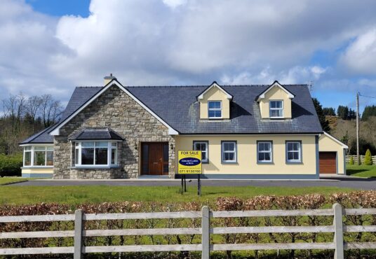 This is an opportunity for a family to enjoy pleasant country living and yet only 25 minutes from Sligo Town and 10 minutes to Collooney train station with a frequent service to Dublin, 25 minutes to Knock Airport with daily flights to the UK, located in scenic area only minutes to Coolaney Village with shops, school, health centre, restaurant, river walks and the national mountain bike trail, the Wild Atlantic way has lots of opportunities for surfers, hill walkers, golf, walking paths along the stunning coast line.