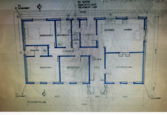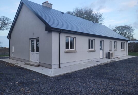 3 bedroomed detached bungalow on c 0.40 ha. The property is 1,590 sq ft, air to water heating, PVC windows and doors, large garden.